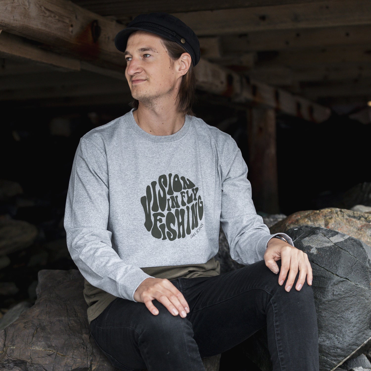 Since Long Sleeve with the Woodstock themed classical Vision Fly Fishing logo.